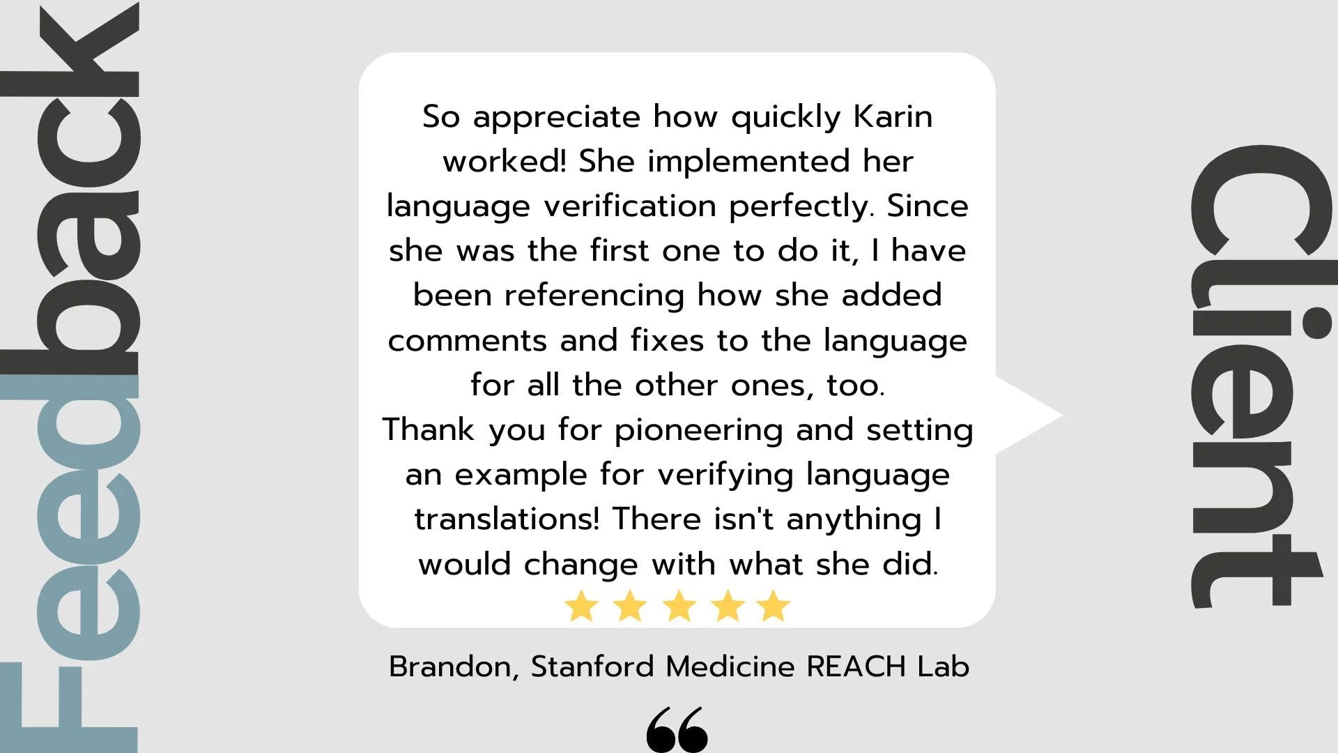 Some of my favorite long-term projects include reviewing AP German books and auxiliary materials for Carnegie Learning, as well as translating, validating, and reviewing the gamified German version of the Healthy Futures Cannabis Project for the Stanford Medicine REACH Lab, Division of Adolescent Medicine.